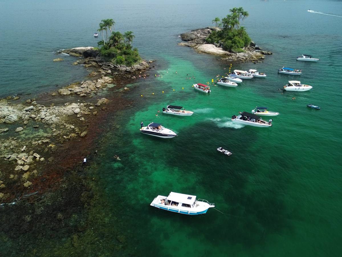 Passeio pelas ilhas de Angra com paradas em locais icônicos como a Ilha de Cataguases, as Ilhas Botinas e a Praia do Dentista.